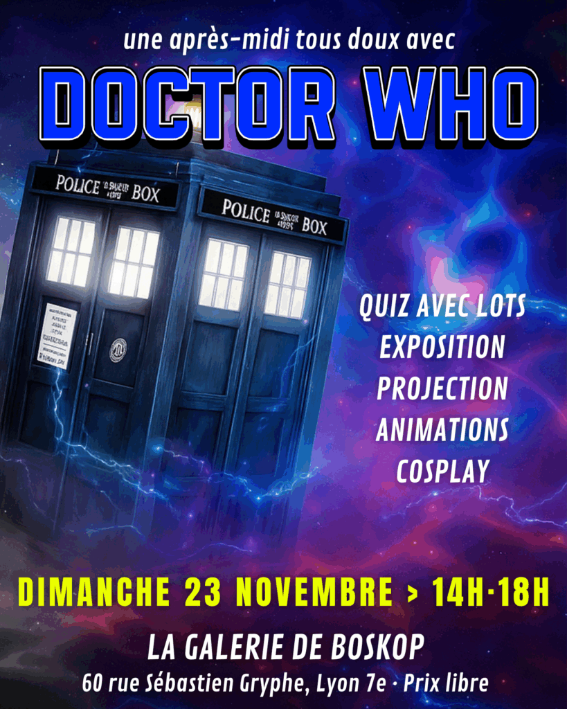 🌀 COUCOU DOCTEUR WHO ? – Après-midi spéciale Doctor Who à BosKop 📅 Dimanche 23 novembre · 🕓 14h à 18h · ☕ Entrée prix libre
