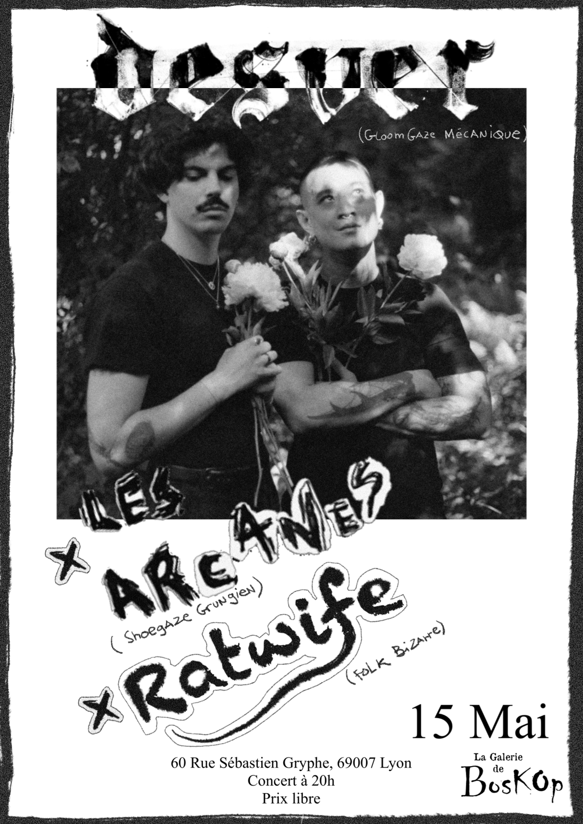 Entre Desver (Gloomgaze Mécanique), les Arcanes (Shoegaze Grungien) et Ratwife (Folk Bizarre), c’est la scène lyonnaise et tout ce qu’elle a d’émotif, d’expérimental et de minimaliste qui sera mise en avant.