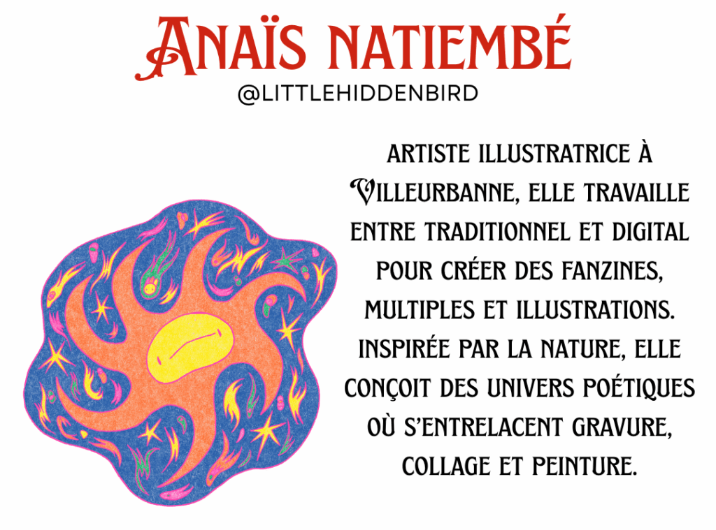 Je suis Anaïs une artiste illustratrice basée à Villeurbanne. Je dessine, peins, écris, imprime, coupe, plie et fabrique des fanzines et des multiples à la croisée des chemins. Des chemins que j’ai empruntés et qui m’ont empreints. Chacun de mes travaux s’organisent comme élément distinct d’un tout, soit une recherche vers mon être intérieur.